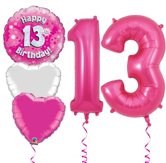 Party package: 1x 3 balloon bouquets & 2x 34" pink number