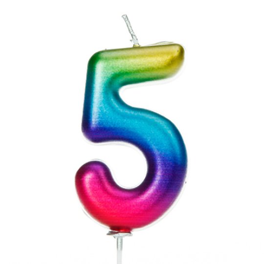 AGE 5 METALLIC RAINBOW CANDLE 1