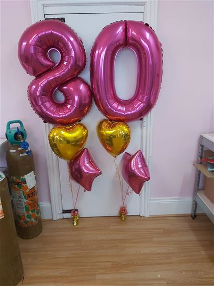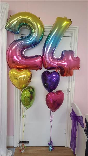 £50: includes 4x 18" balloons (2x balloons under each number)