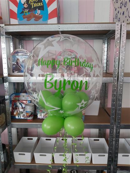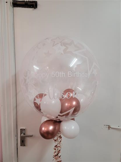 We need minimum 24hrs notice to process a personalised bubble balloon. All balloons are filled with helium & includes 9 small latex balloon inside, ribbon/curls & weight.