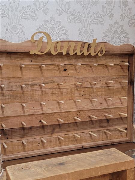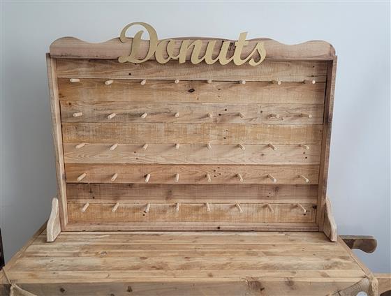 Doughnut walls are a fun new way to display Doughnuts. Perfect to offer a selection of delicious donuts for your all guests. (also we have 2 rustic Donut stands) *Holds 40-80 (doubled up)- Dry hire (please contact us to add Doughnuts)