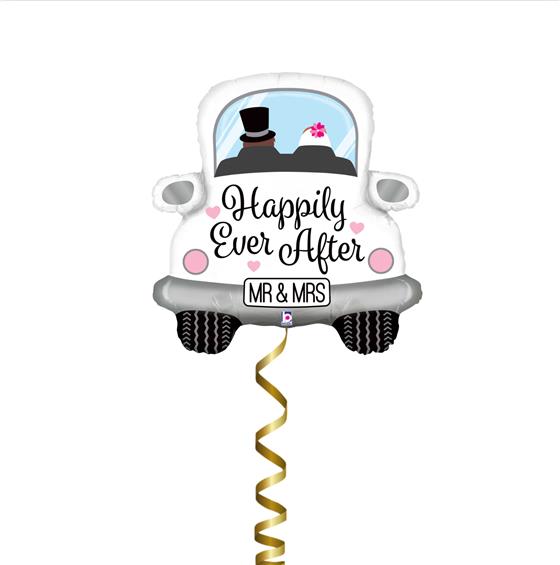 Happily Ever Afterwedding car includes helium, ribbon & weight.